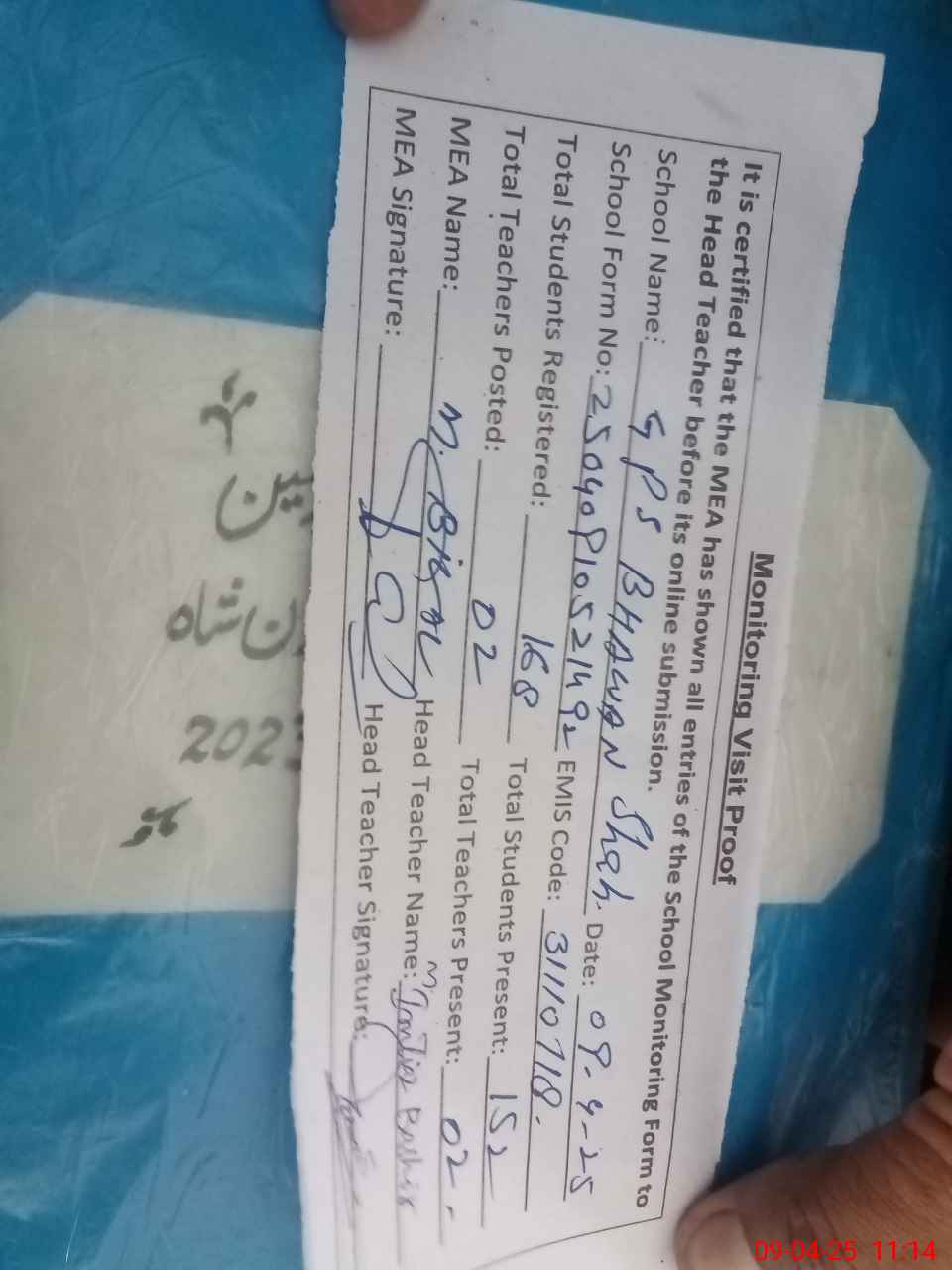 | EMIS Code: 31110118 | Name of School: GPS BHAWAN SHAH | |||