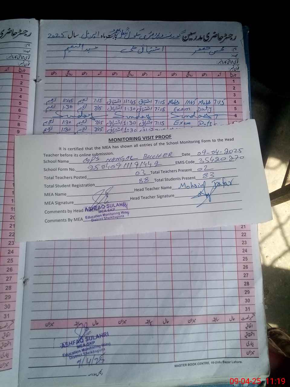 | EMIS Code: 35420270 | Name of School: GPS NANGAL BUCHER | |||