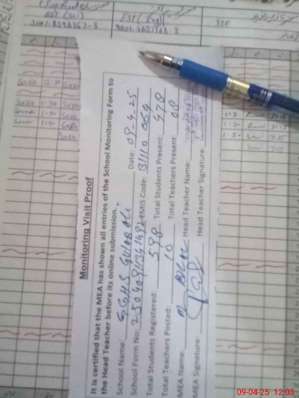 | EMIS Code: 31110064 | Name of School: GGHS GULAB ALI | |||