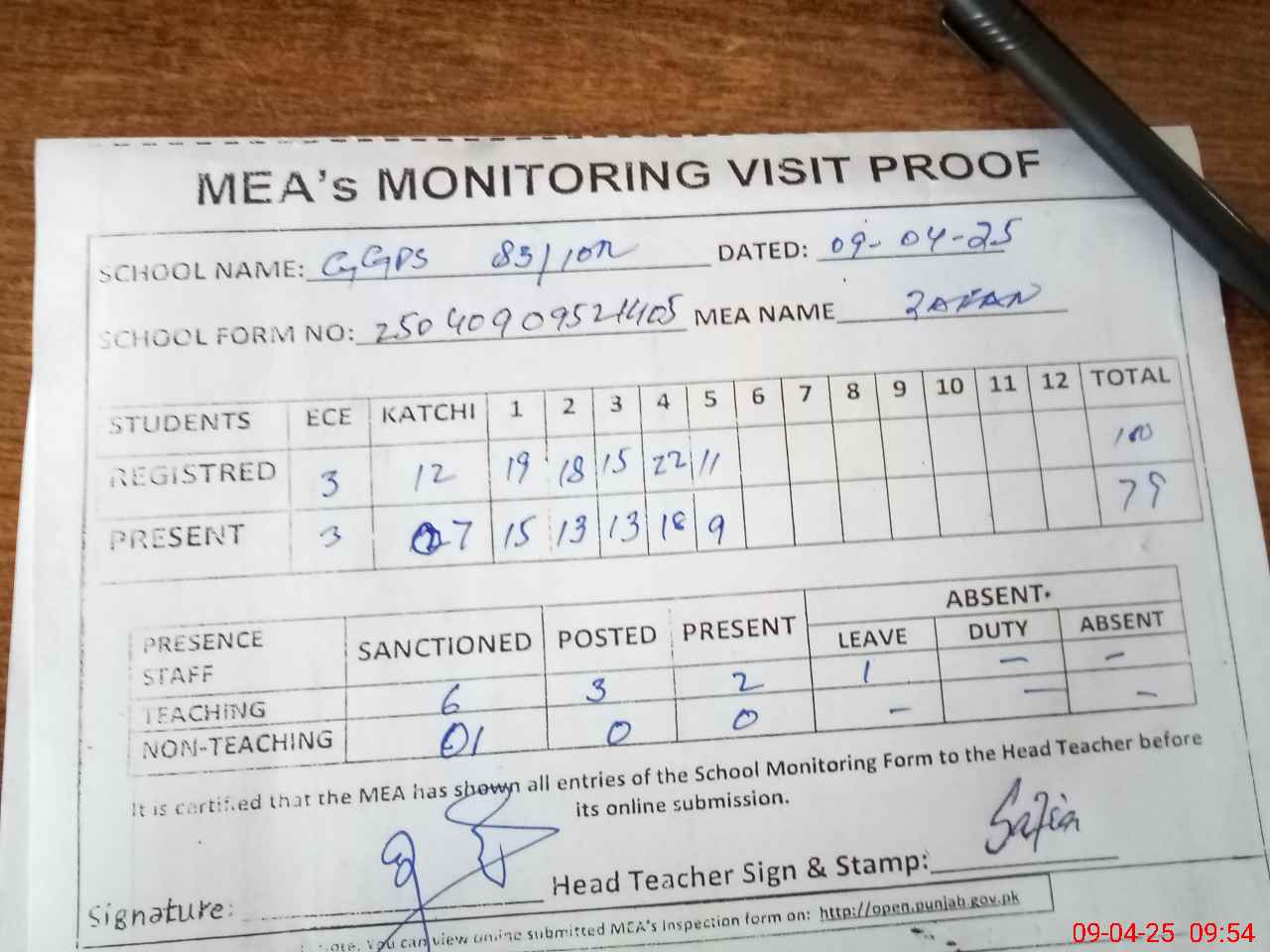 | EMIS Code: 36420427 | Name of School: GGPS 83/10-R, KHANEWAL | |||