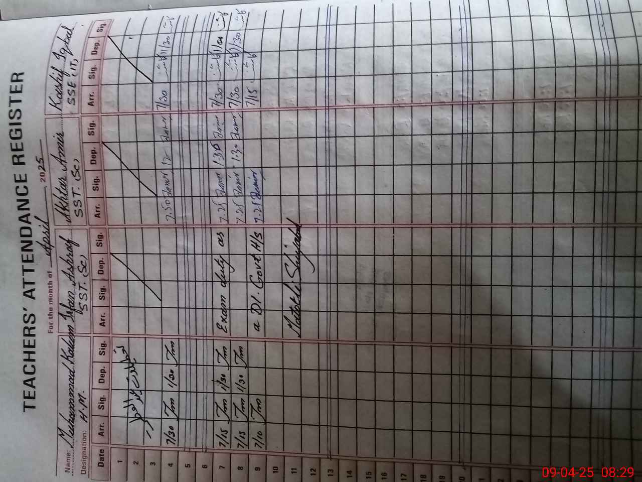 | 36**** | Mu**** Ir**** As**** | SST | Regular | 0 | 0 | 0 | 0 | 0 | 0 | 0 | 0 | 0 | Exam Duty |
