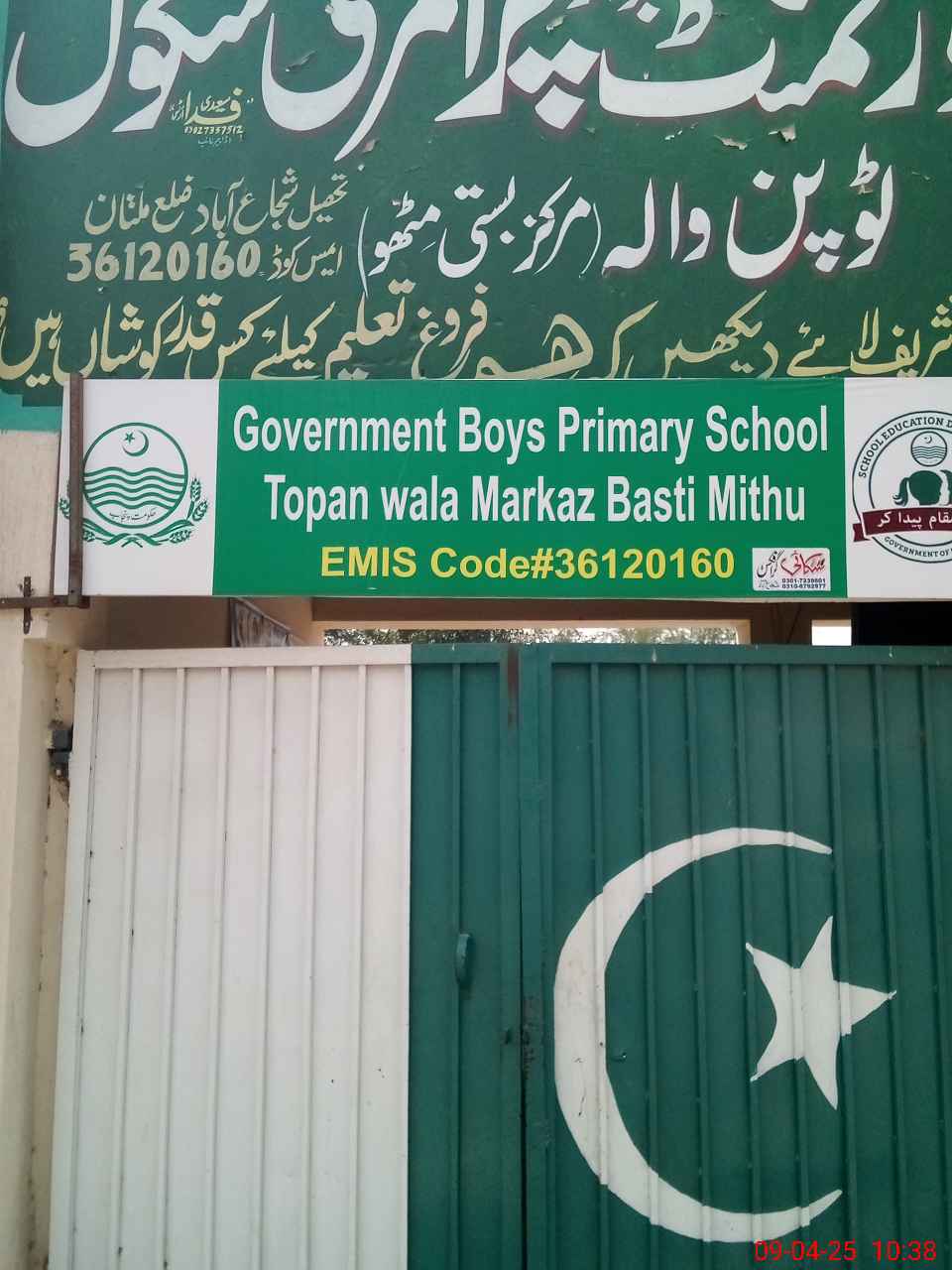 | District: MULTAN | Tehsil: SHUJA ABAD | Markaz: BASTI MITHO - MALE | Level: Primary | |