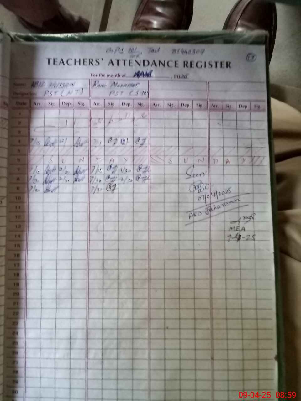 | Monitoring Date: 09-04-2025 | Start Time: 09-04-2025 08:34 AM | End Time: 09-04-2025 09:05 AM | Name of MEA: AB**** RA**** | |
