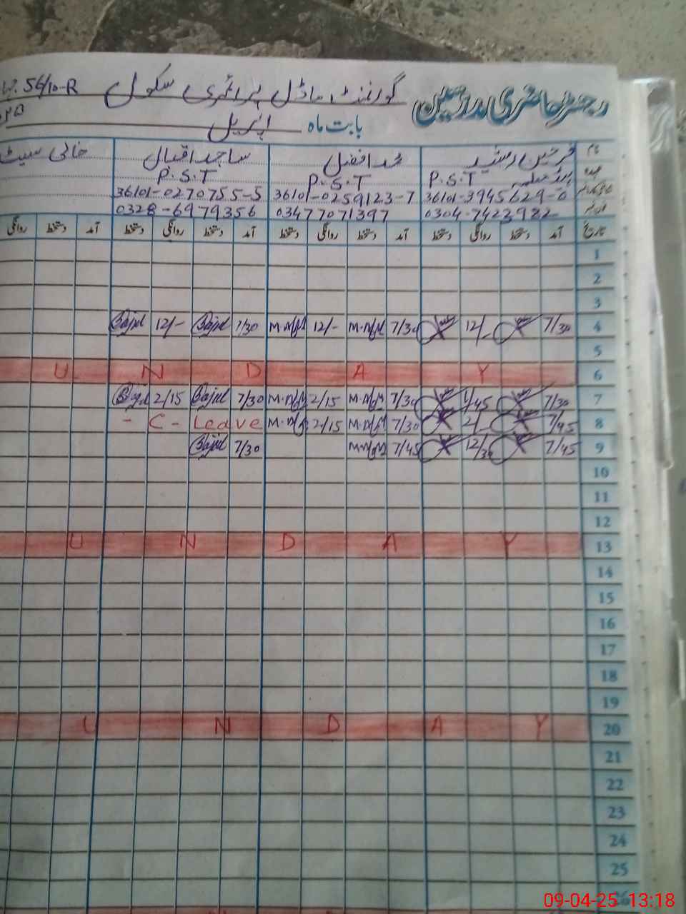 | CNIC | Full Name | Designation | R/C | Absence During Last Calender Month |