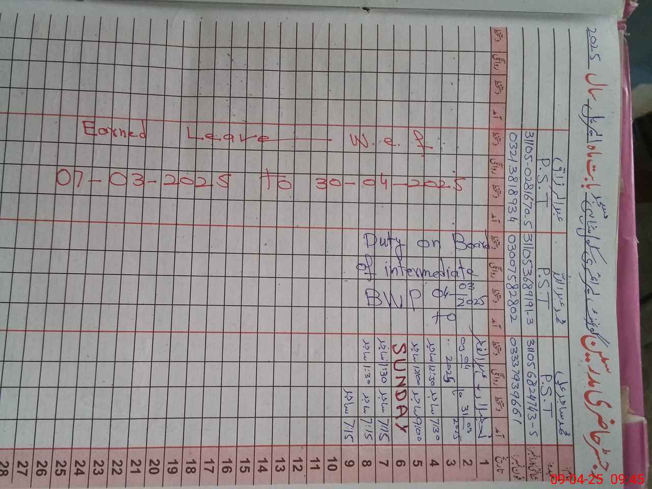 | Name: Mu**** Sa**** Al**** Designation: (School Headmaster's/Headmistress's) PST Phone/Cell Number: 03**** |