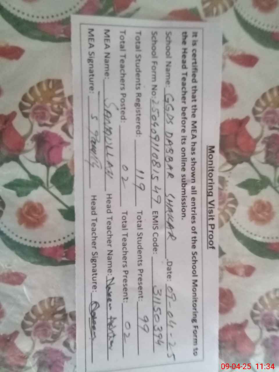 | EMIS Code: 31150394 | Name of School: GGPS DABBAR SHAKAR GUNJ | |||
