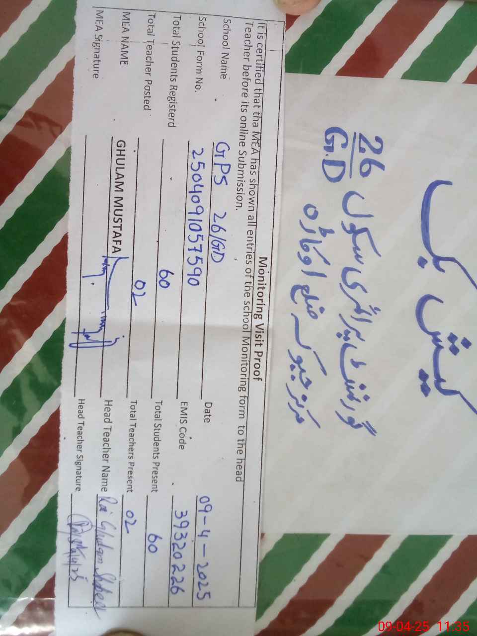| EMIS Code: 39320226 | Name of School: GPS CHAK 26/G.D | |||