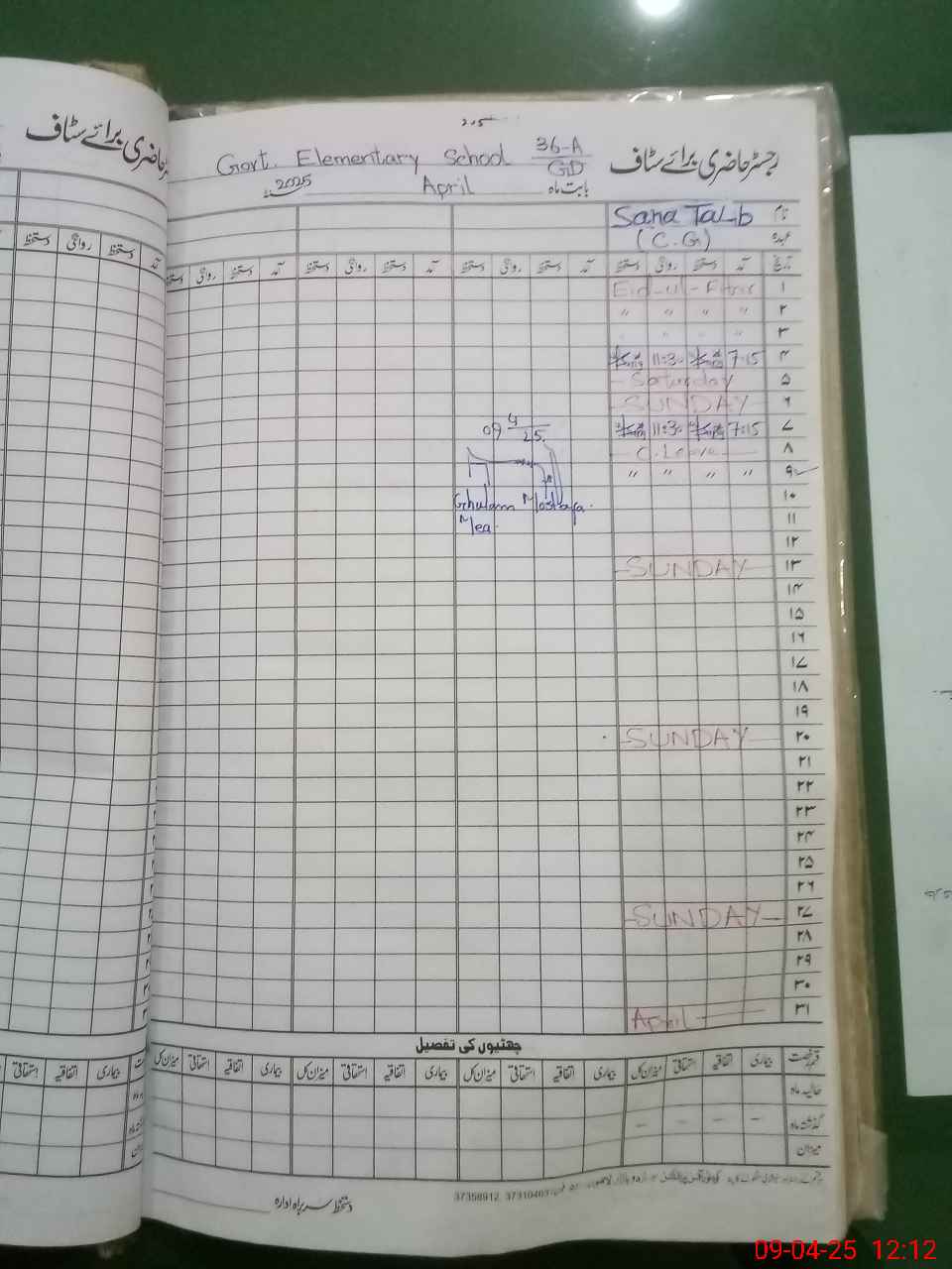 | Name: Gh**** Ra**** Designation: (School Headmaster's/Headmistress's) EST Phone/Cell Number: 03**** |