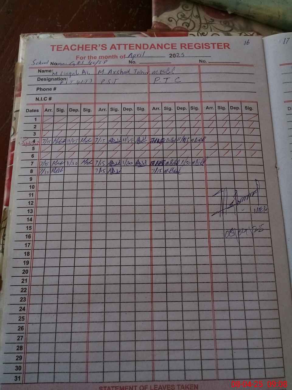 | Name: Li**** Al**** Designation: (School Headmaster's/Headmistress's) PST Phone/Cell Number: 03**** |