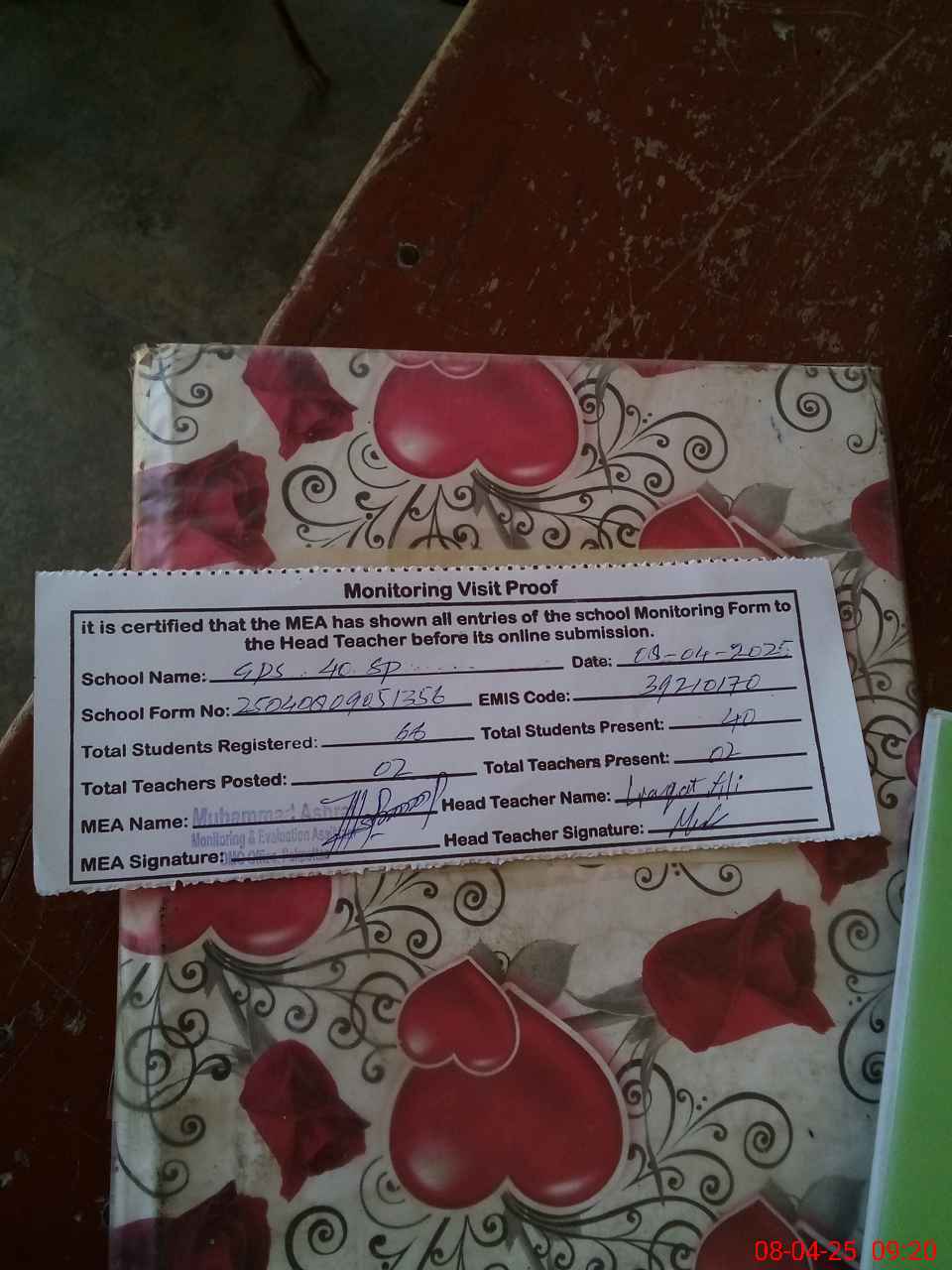 | EMIS Code: 39210170 | Name of School: GPS 40 SP | |||