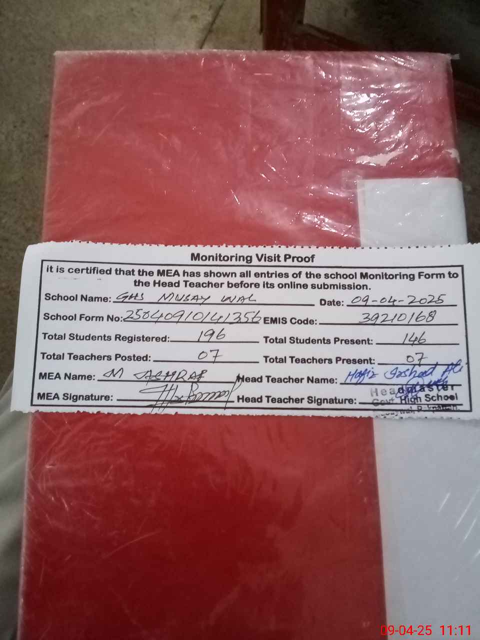 | EMIS Code: 39210168 | Name of School: GHS MUSAY WAL P/O 39/SP PAKPATTAN | |||
