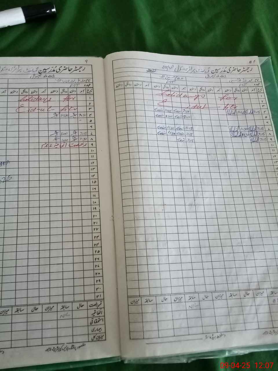 | CNIC | Full Name | Designation | R/C | Absence During Last Calender Month |