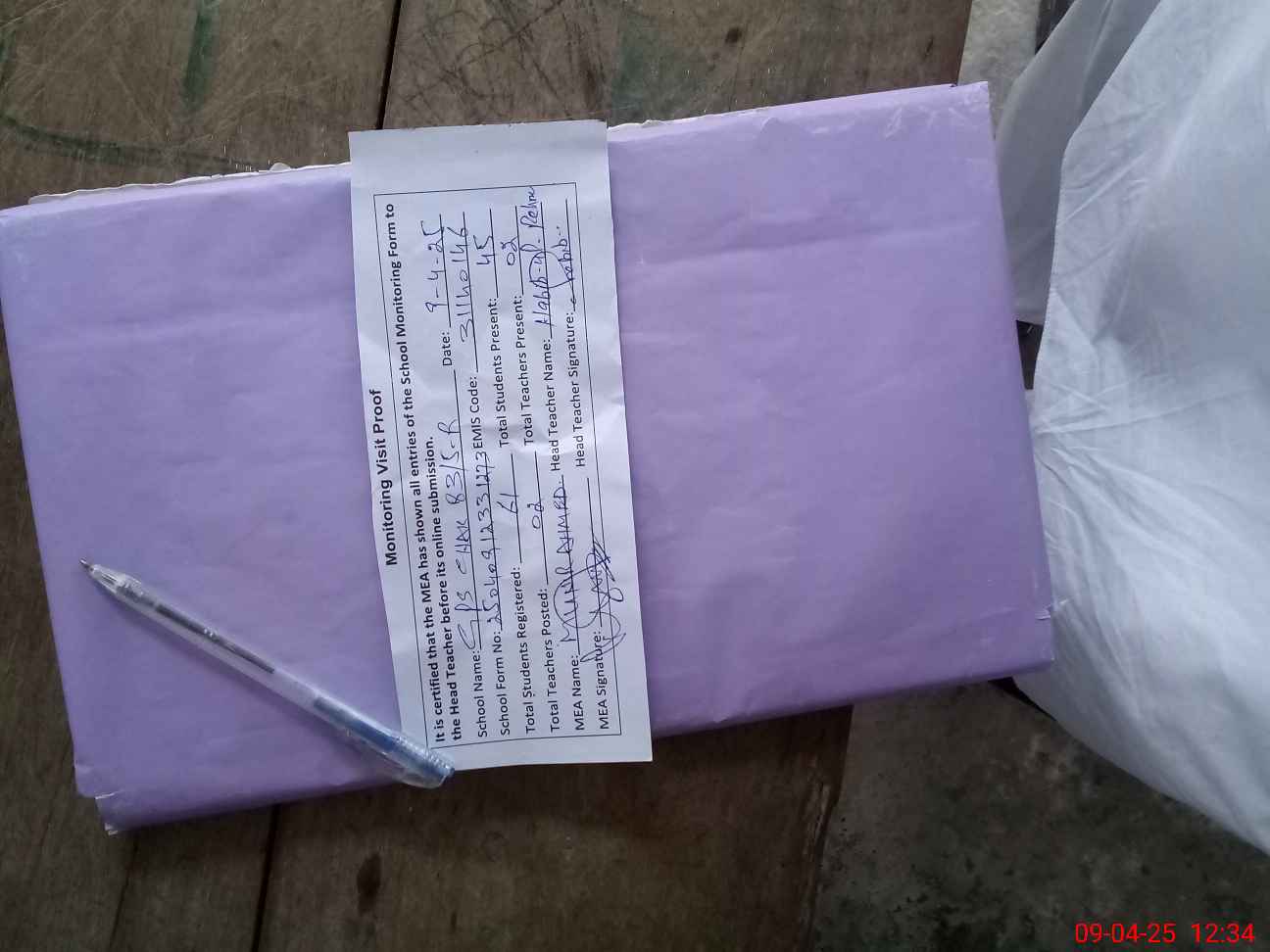 | Attendance Register | Head Teacher | MEA with School | Visit Proof |