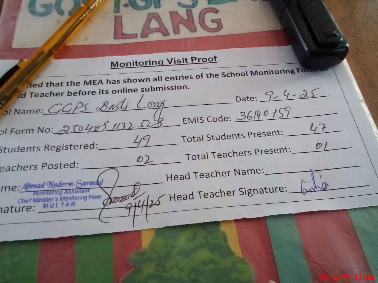 | EMIS Code: 36140159 | Name of School: GGPS BASTI LONG TEH. JALALPUR PIRWALA | |||