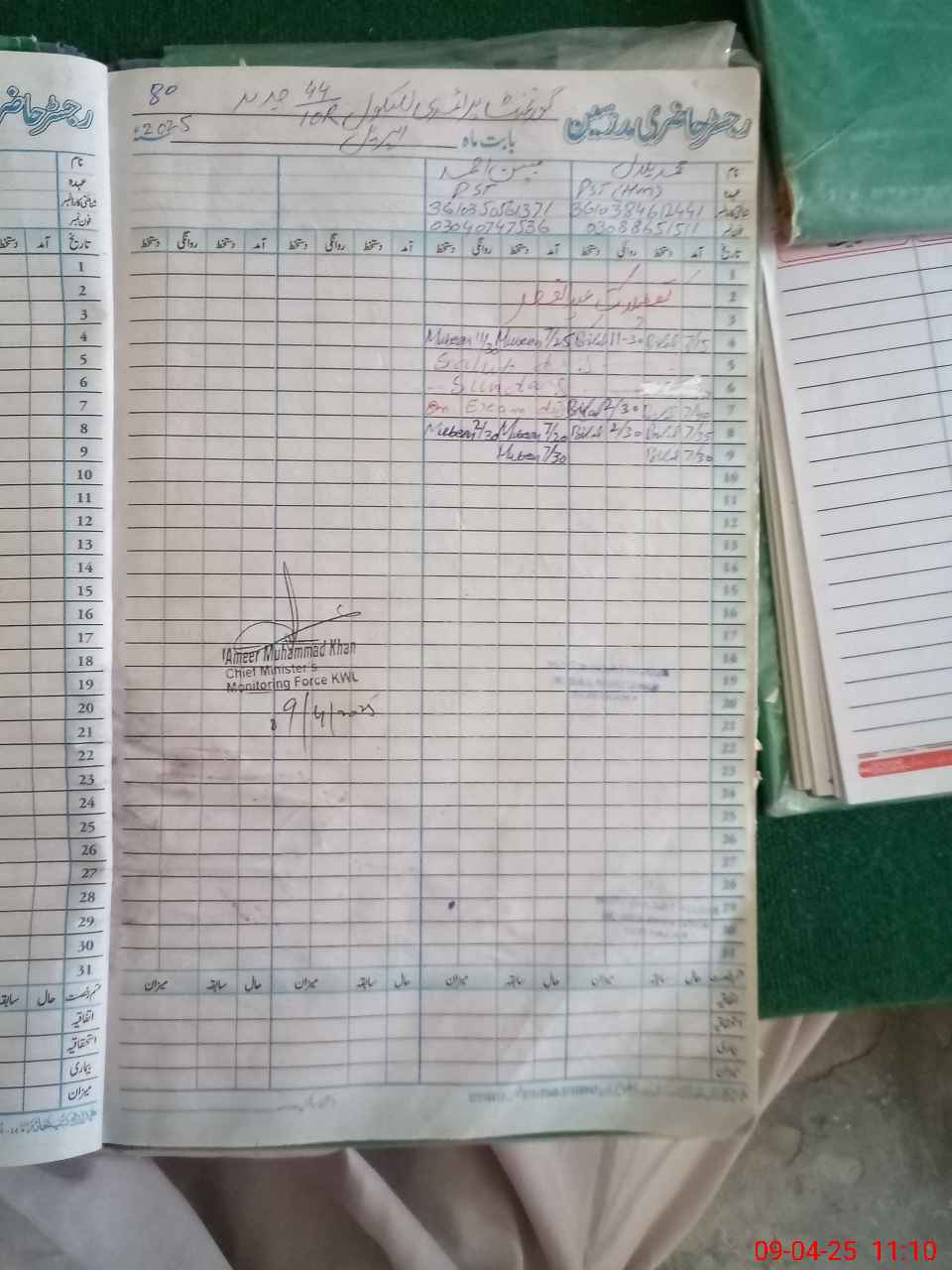 | Name: MU**** BI**** Designation: (School Headmaster's/Headmistress's) PST Phone/Cell Number: 03**** |