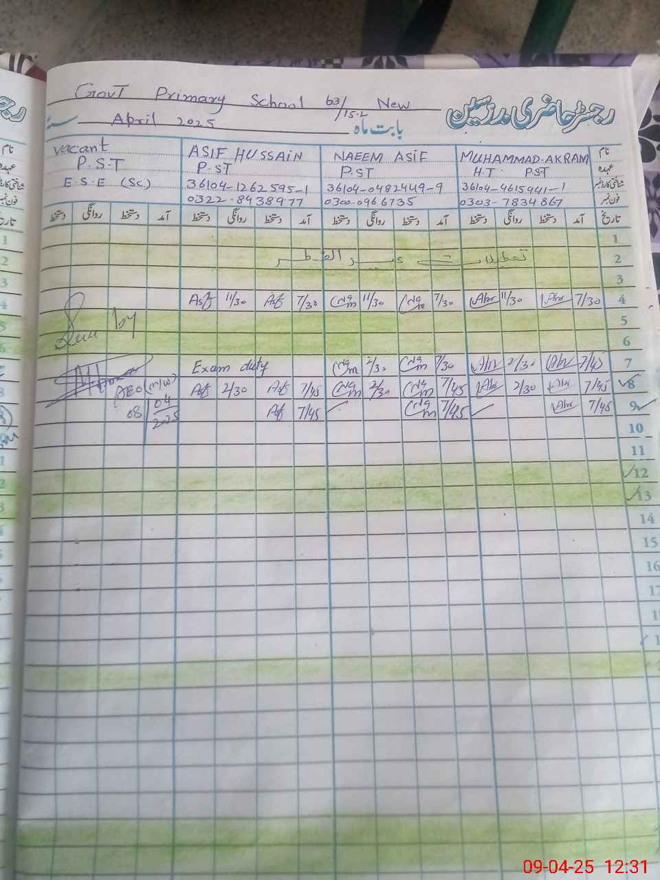 | Name: M.AK**** Designation: (School Headmaster's/Headmistress's) PST Phone/Cell Number: 03**** |
