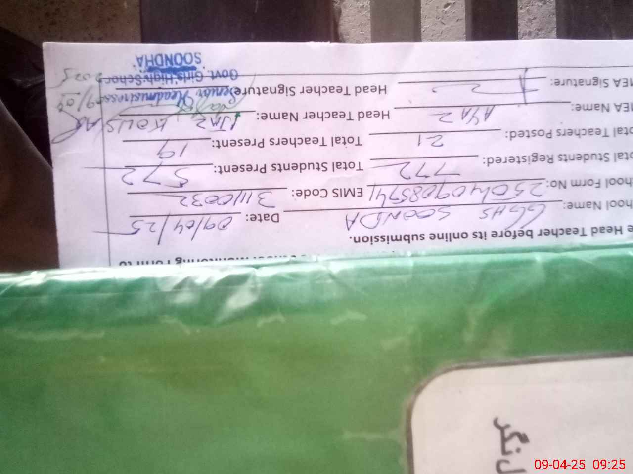 | Name: Ij**** Ko**** Designation: (School Headmaster's/Headmistress's) HEAD MISTRESS Phone/Cell Number: 03**** |