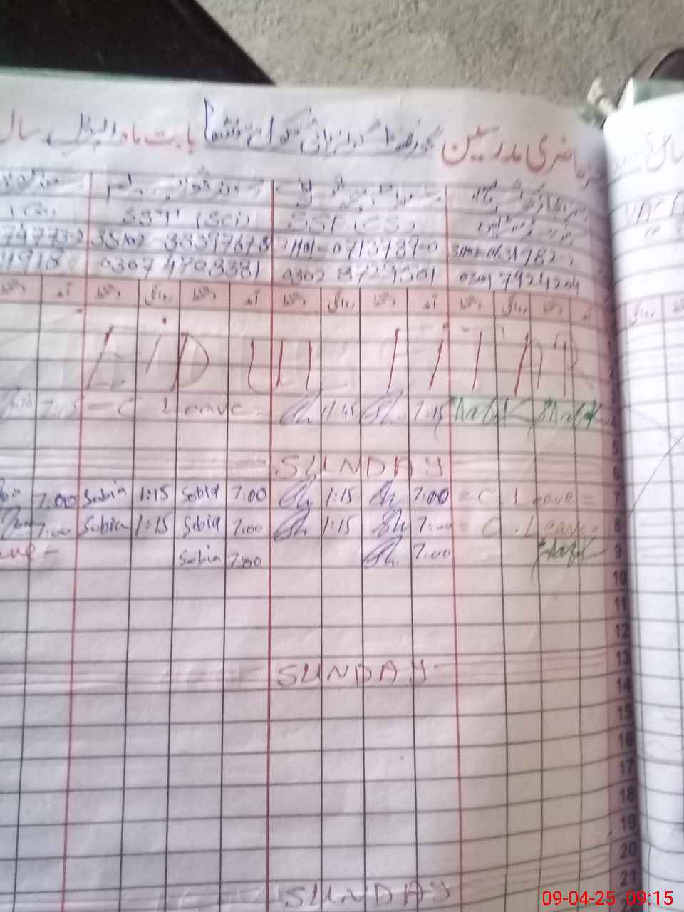 | CNIC | Full Name | Designation | R/C | Absence During Last Calender Month |
