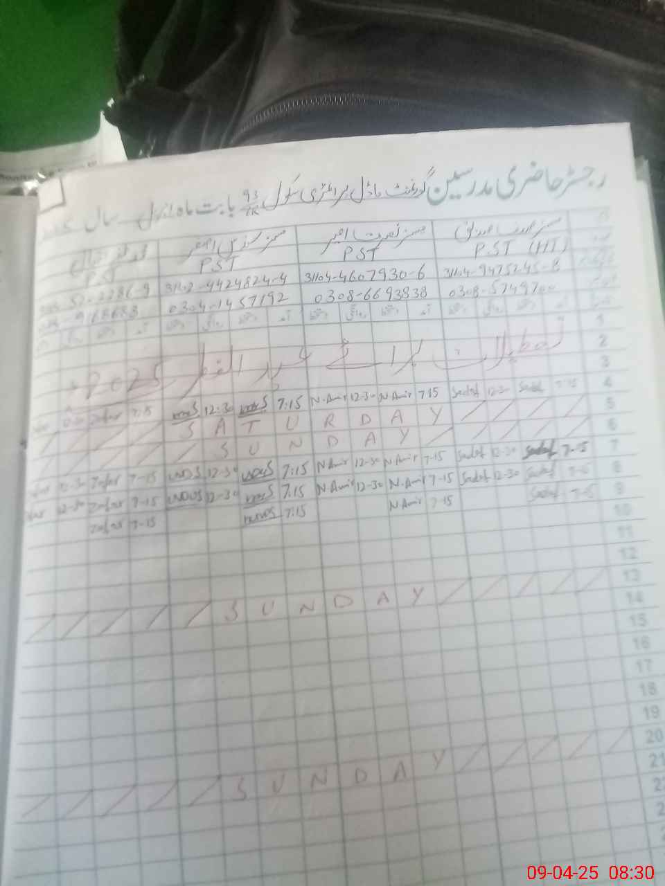| Name: SA**** Sa**** Designation: (School Headmaster's/Headmistress's) PST Phone/Cell Number: 03**** |