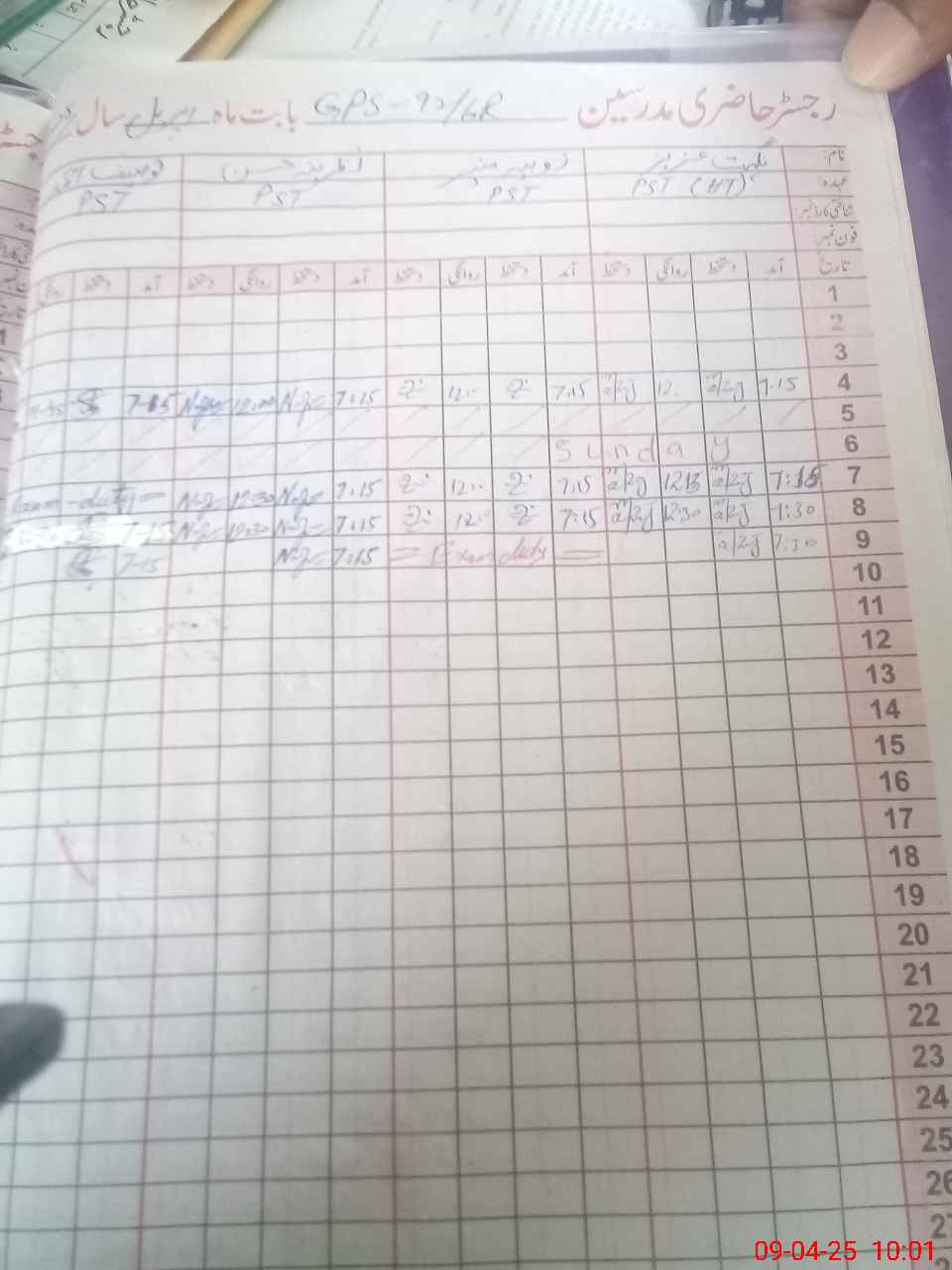 | 31**** | Zo**** Mu**** | PST | Regular | 0 | 0 | 0 | 0 | 0 | 0 | 0 | 0 | 0 | Exam Duty |