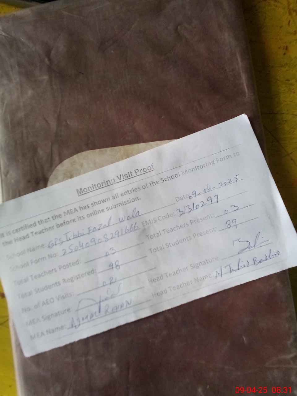 | EMIS Code: 31310297 | Name of School: GPS TIBI FAZIAL WALA | |||