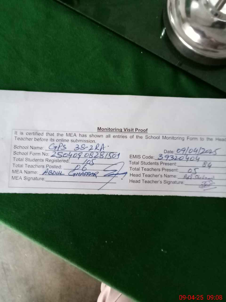 | EMIS Code: 39320404 | Name of School: GES CHAK NO.38/2-RA | |||