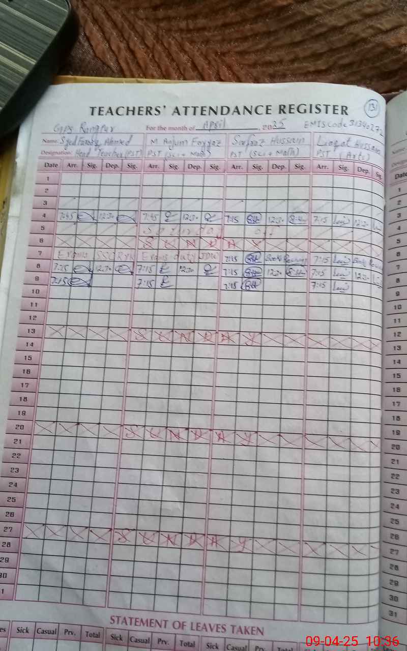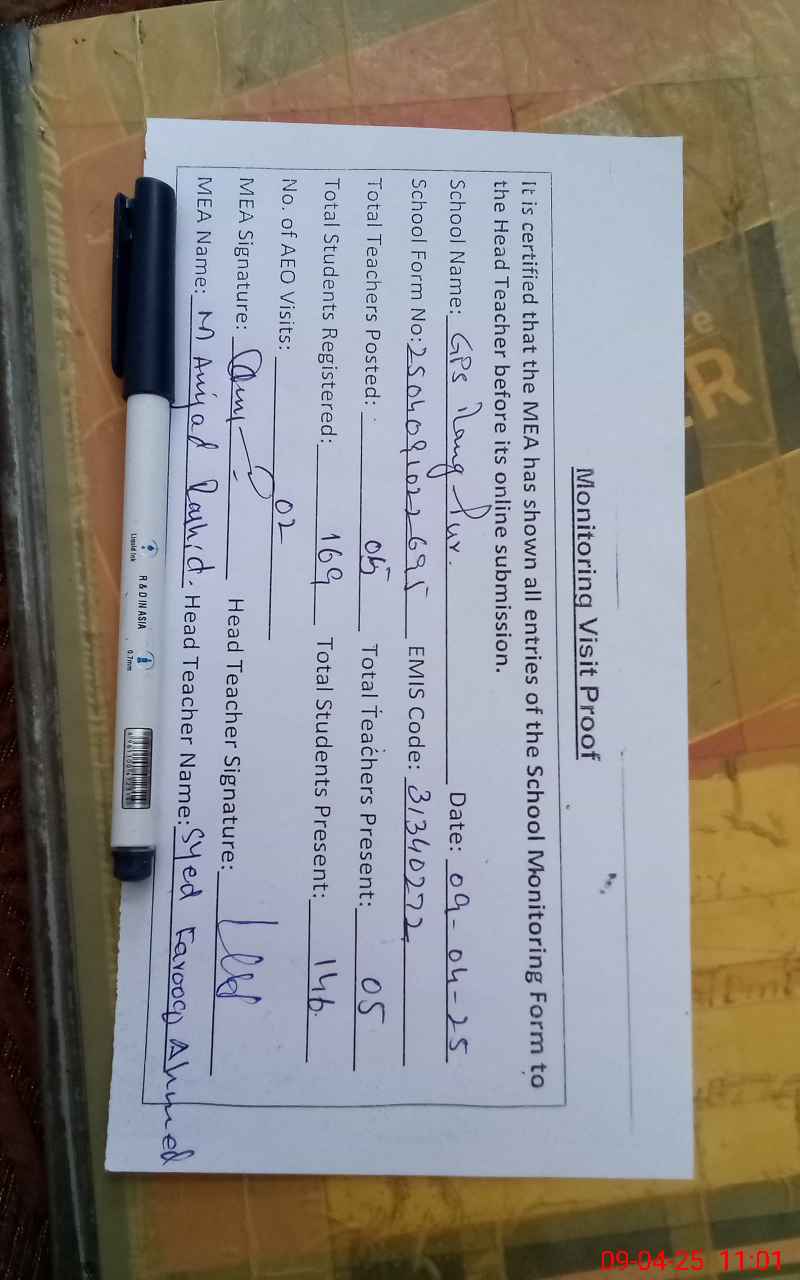| EMIS Code: 31340272 | Name of School: GPS RANG PUR | |||