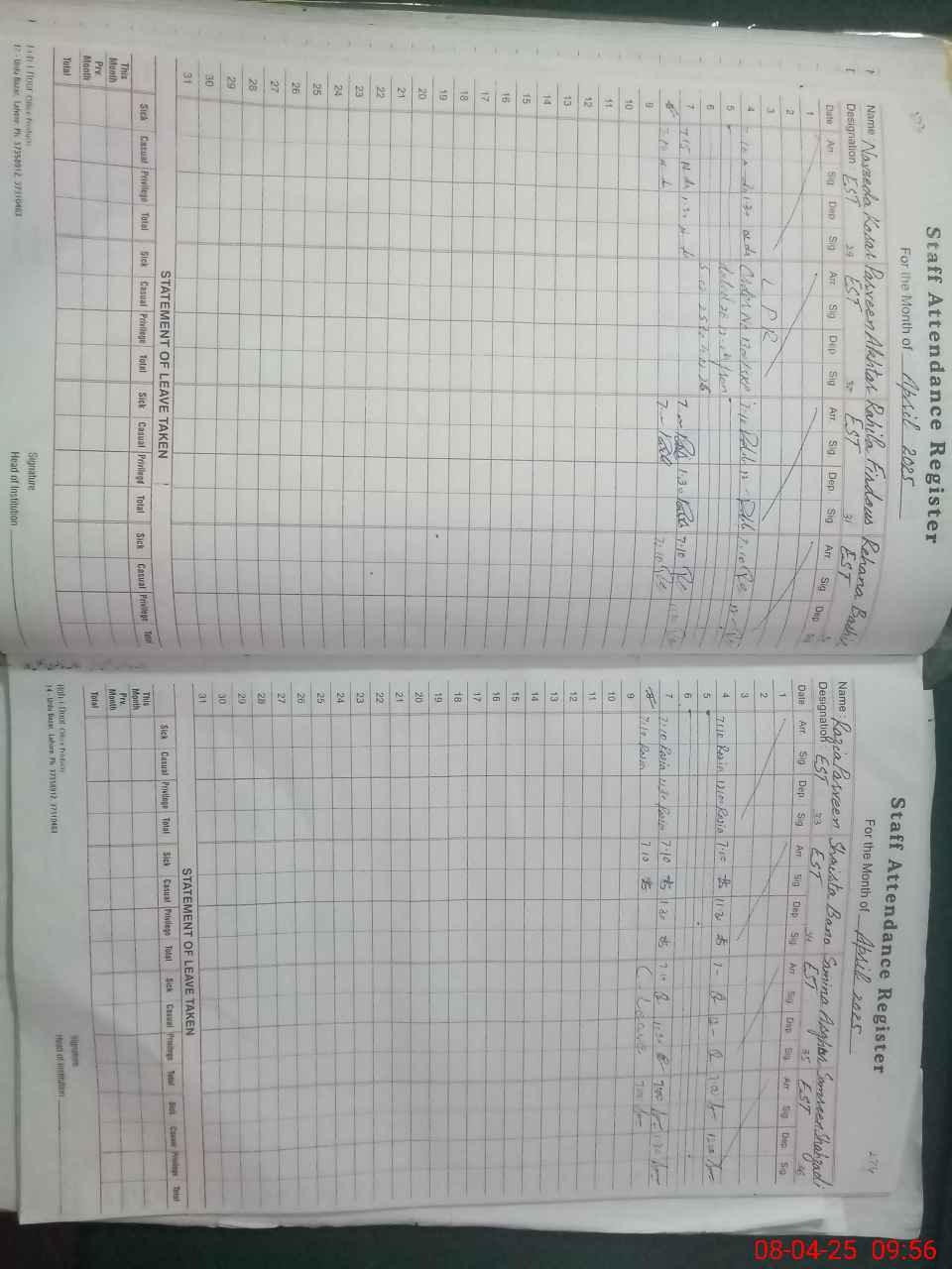 | CNIC | Full Name | Designation | R/C | Absence During Last Calender Month |