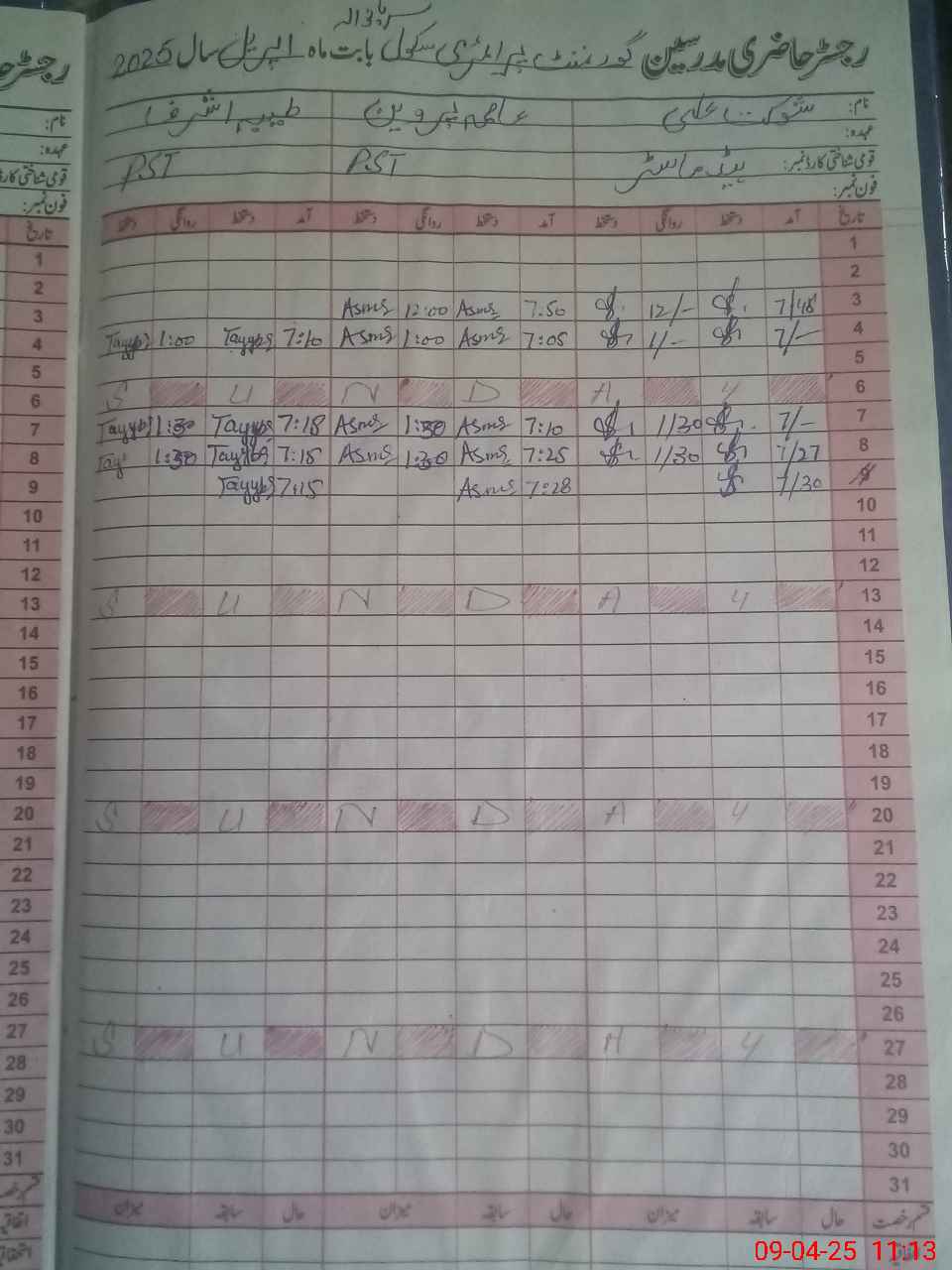 | Name: SH**** AL**** Designation: (School Headmaster's/Headmistress's) PTC/JV Phone/Cell Number: 03**** |