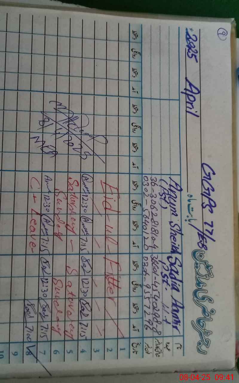 | Name: SA**** AA**** Designation: (School Headmaster's/Headmistress's) PST Phone/Cell Number: 03**** |