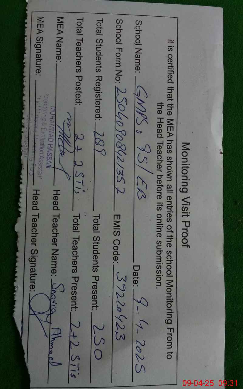 | EMIS Code: 39220423 | Name of School: GMPS 95/EB | |||