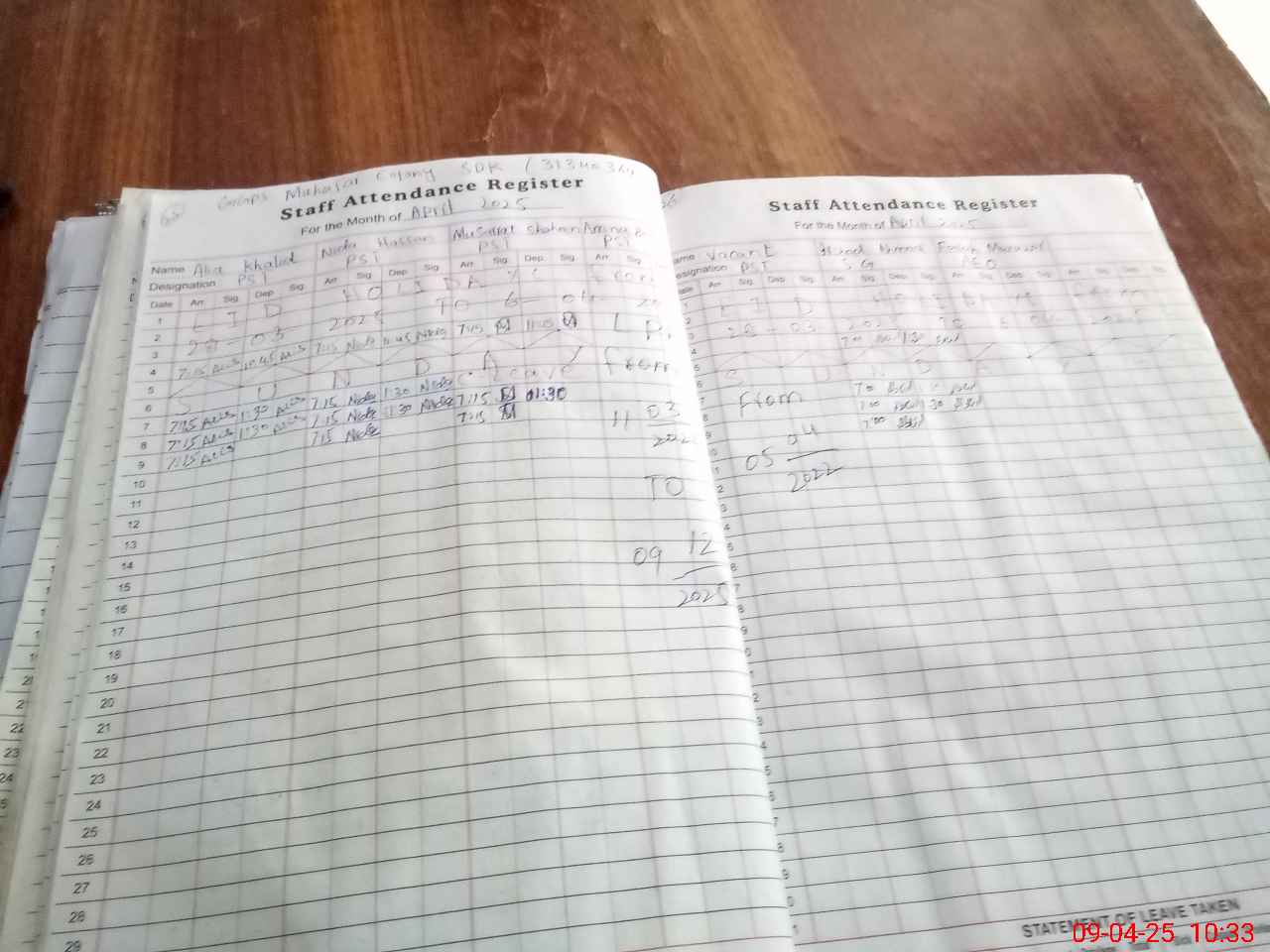 | Leave | Duty | Absent | Maternity | Medical | Ex- Pak |