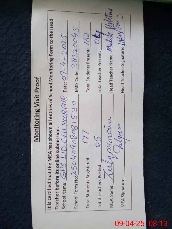 | EMIS Code: 38220045 | Name of School: GPS EID GAH NOOR PUR | |||