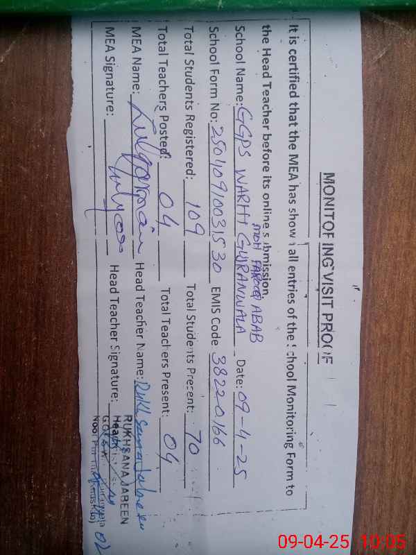 | EMIS Code: 38220166 | Name of School: GGPS WARHI GUJRAN WALA MOHALLA FAROOQ ABAD | |||
