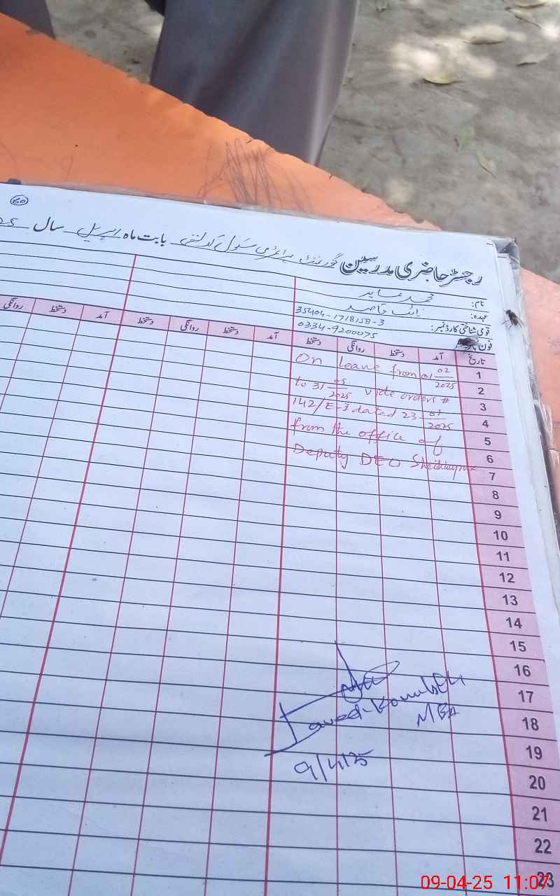 | Name: Ak**** Al**** Designation: (School Headmaster's/Headmistress's) PST Phone/Cell Number: 03**** |