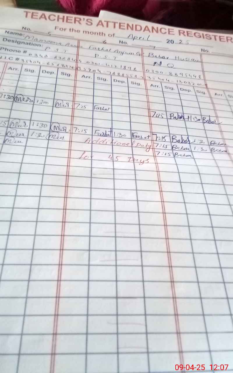 | Name: TA**** KH**** Designation: (School Headmaster's/Headmistress's) PST Phone/Cell Number: 03**** |