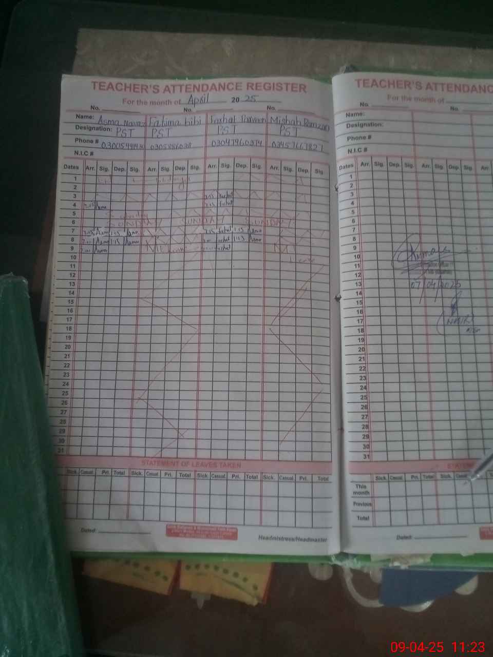 | Name: Fa**** bi**** Designation: (School Headmaster's/Headmistress's) PST Phone/Cell Number: 03**** |