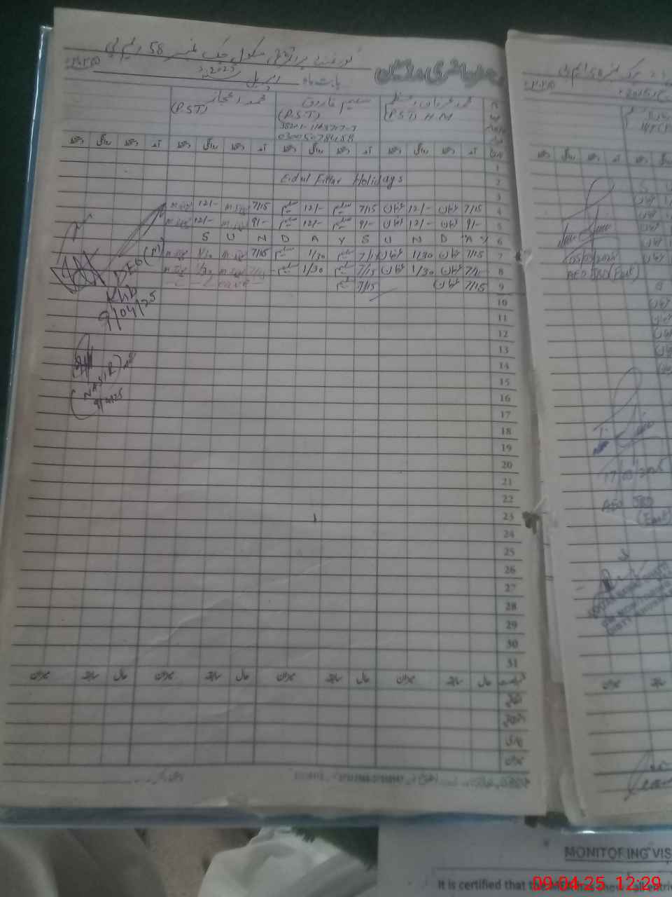 | Name: Mu**** Ej**** Designation: (School Headmaster's/Headmistress's) PST Phone/Cell Number: 03**** |