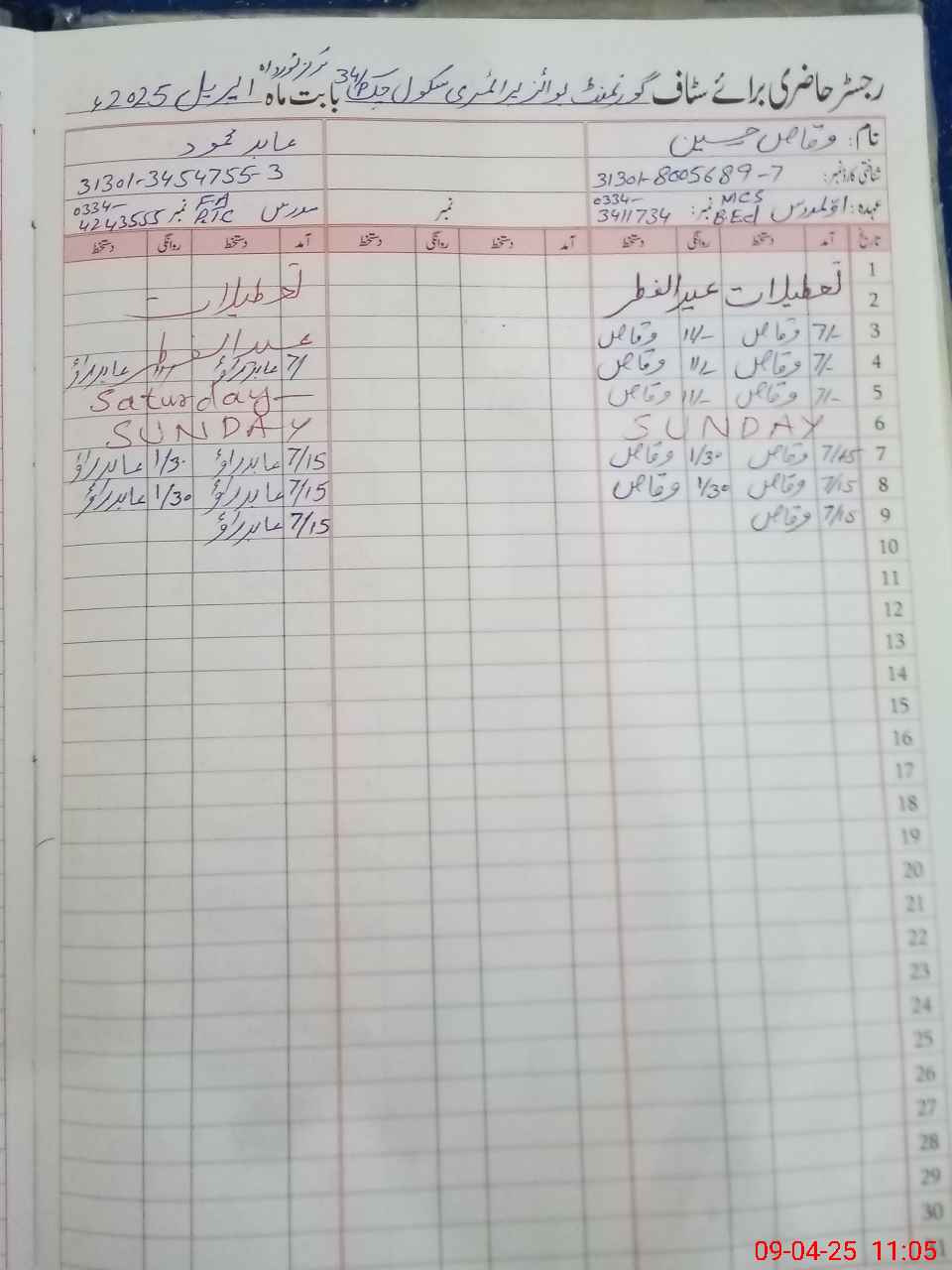 | Name: Wa**** Hu**** Designation: (School Headmaster's/Headmistress's) Head Teacher Phone/Cell Number: 03**** |