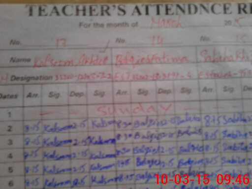 | Remarks (Use Separate Page if Required): Record of SC fund expenditure is so poorly maintained that it could not be understood despite of waisting one hour It is requested that an enquiry may pleased be ordered to find out the reality There seems some embazzlment in the fund NQ Mumtaz arrived 45 minutes after starting time of the school so he is given absent as directed by PMIU | |||||