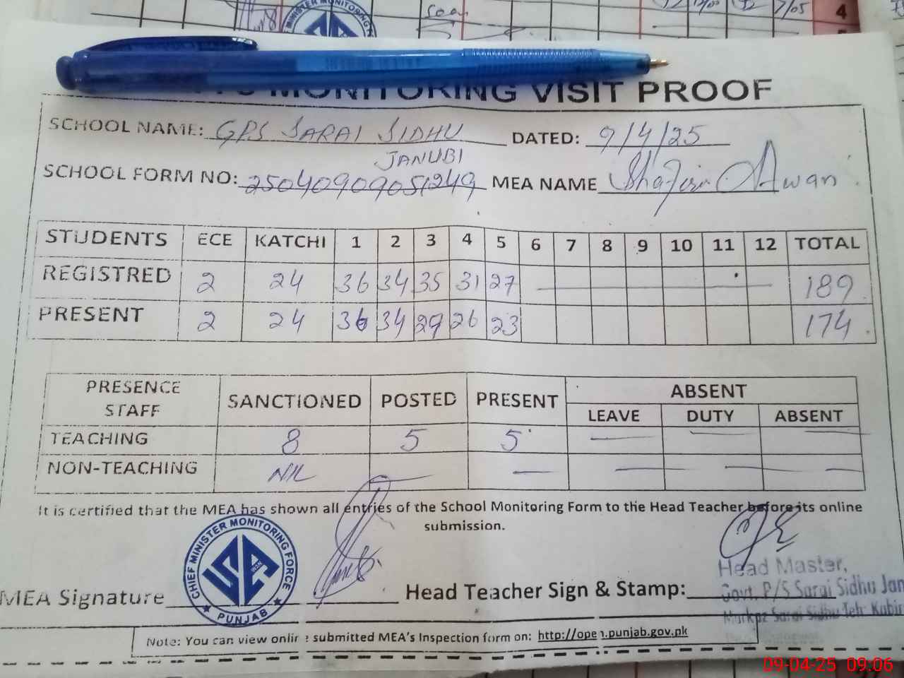 | EMIS Code: 36410230 | Name of School: GPS SARAI SIDHU JANUBI, SARAI SIDHU | |||