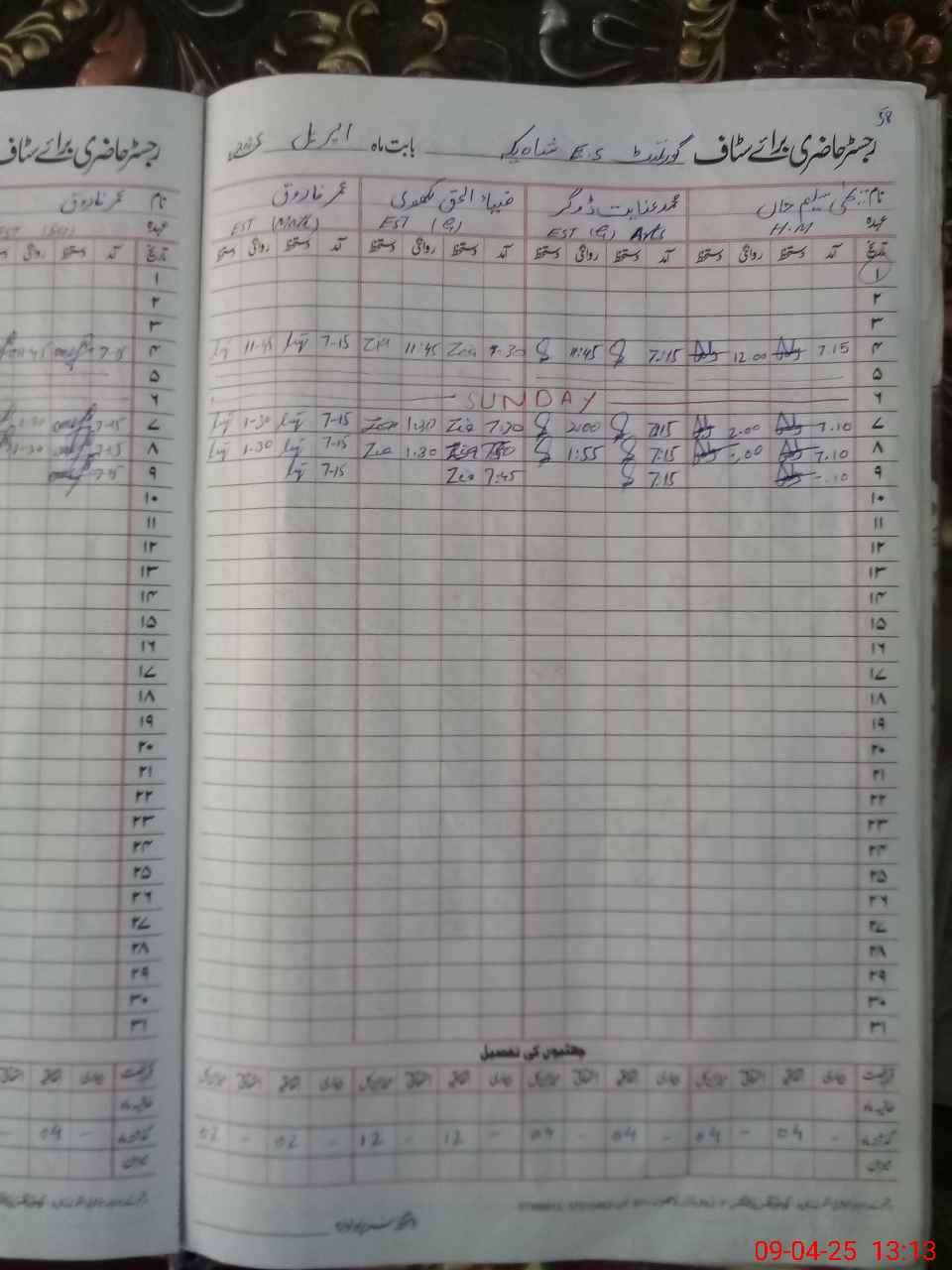 | CNIC | Full Name | Designation | R/C | Absence During Last Calender Month |