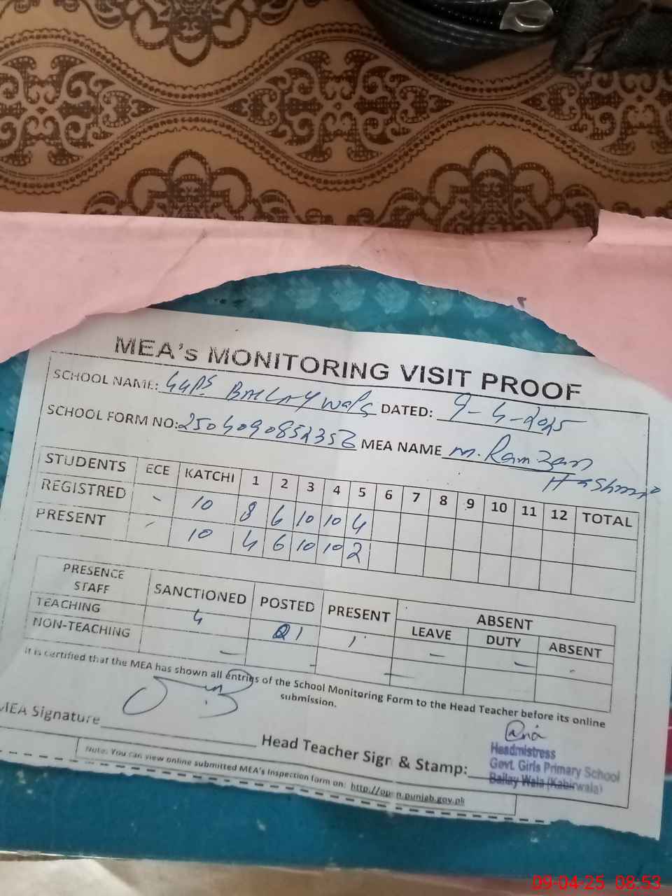| EMIS Code: 36410603 | Name of School: GGPS BAILAY WALA | |||