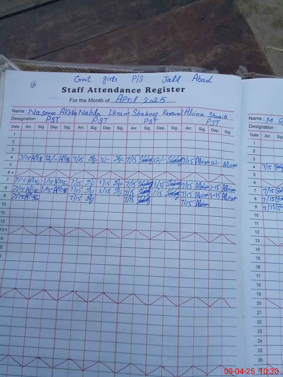 | CNIC | Full Name | Designation | R/C | Absence During Last Calender Month |