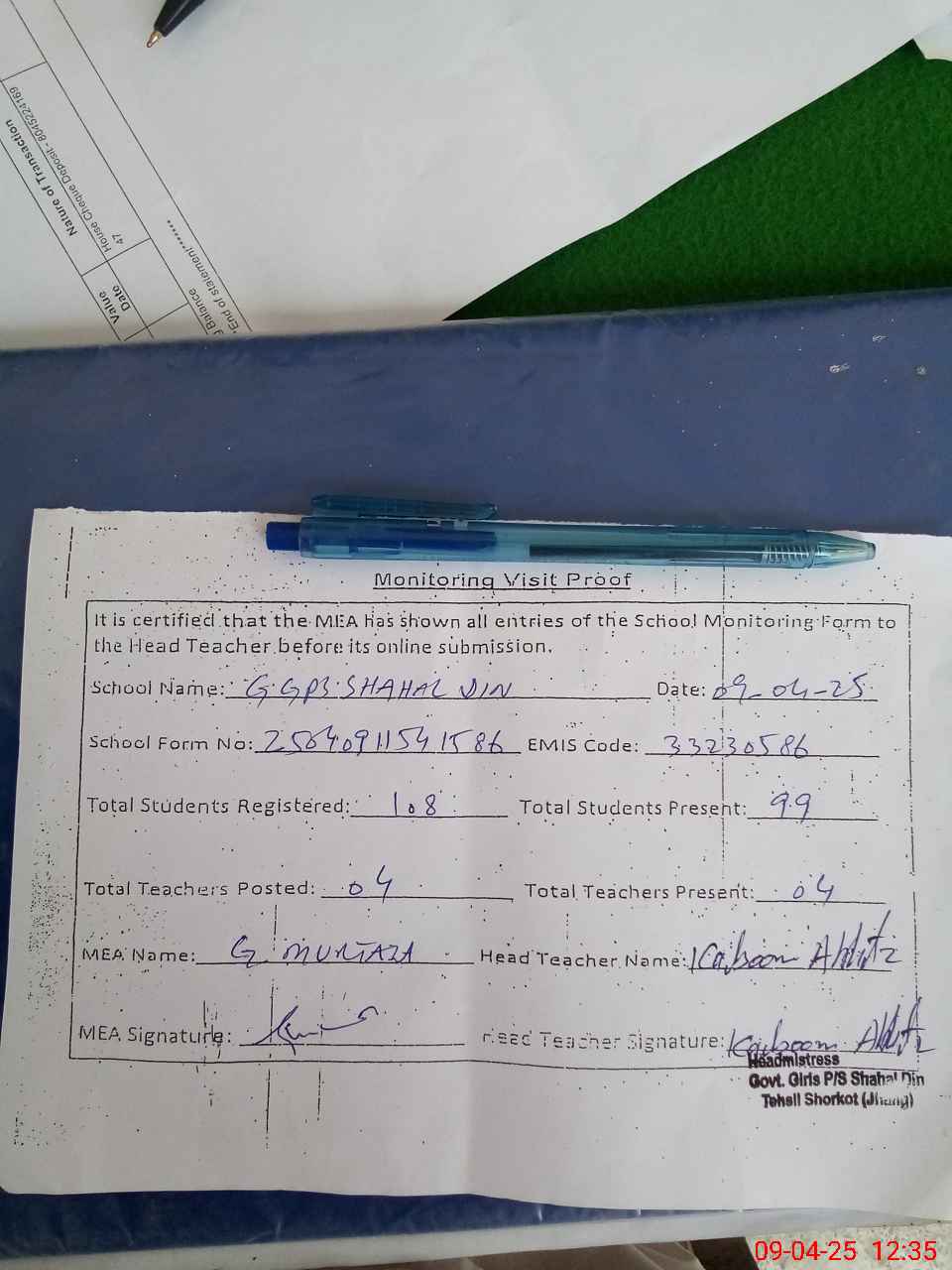 | EMIS Code: 33230586 | Name of School: GGPS SHAHAL DIN | |||