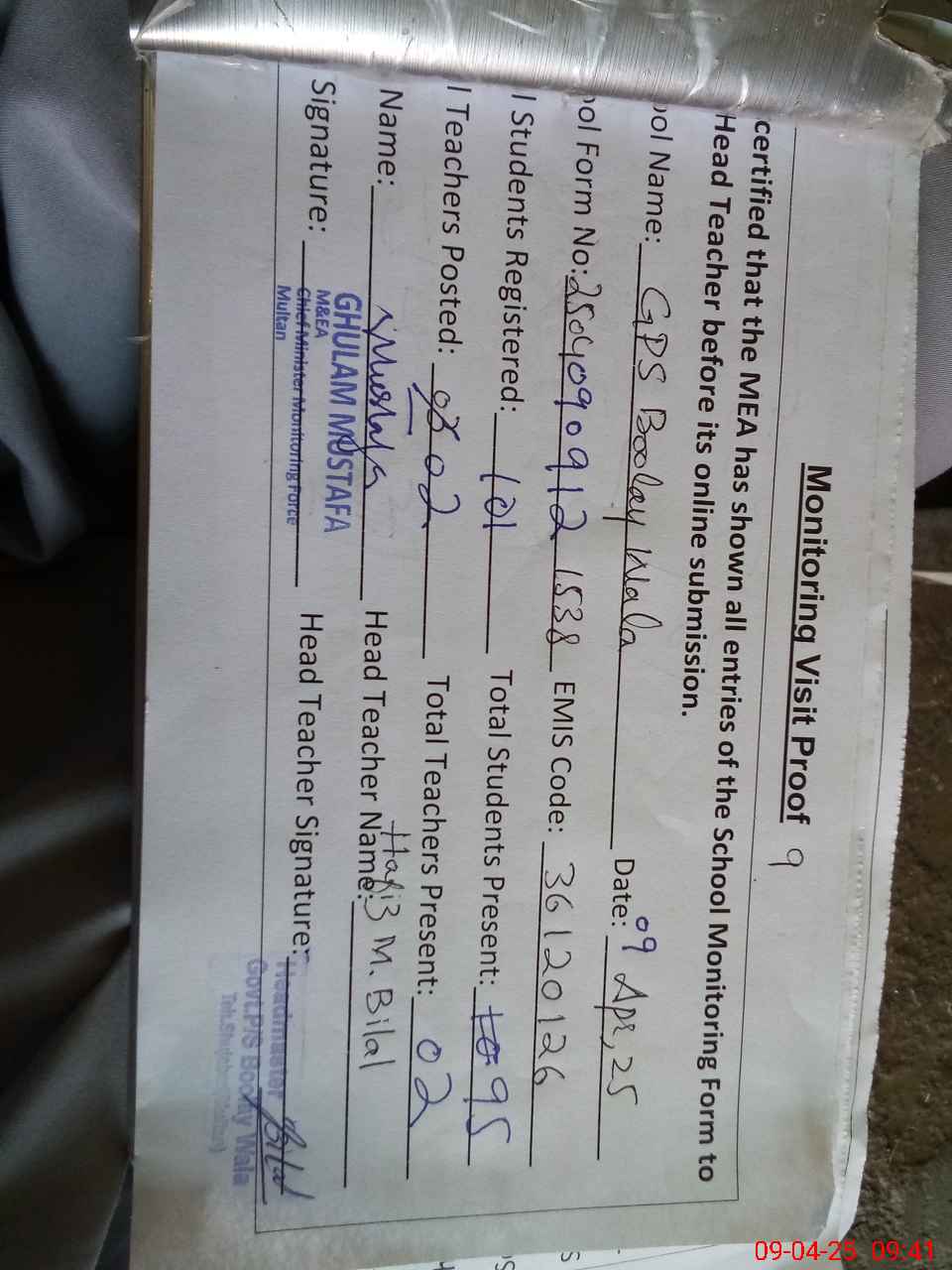 | EMIS Code: 36120126 | Name of School: GPS BOOLAY WALA P/O KOTLI NIJABAT | |||