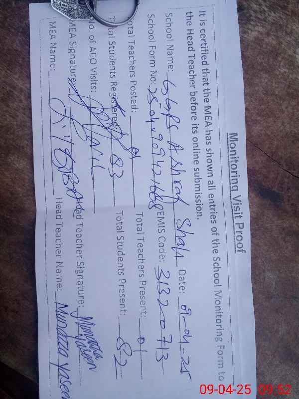 | EMIS Code: 31320713 | Name of School: GGPS ASHRAF SHAH | |||