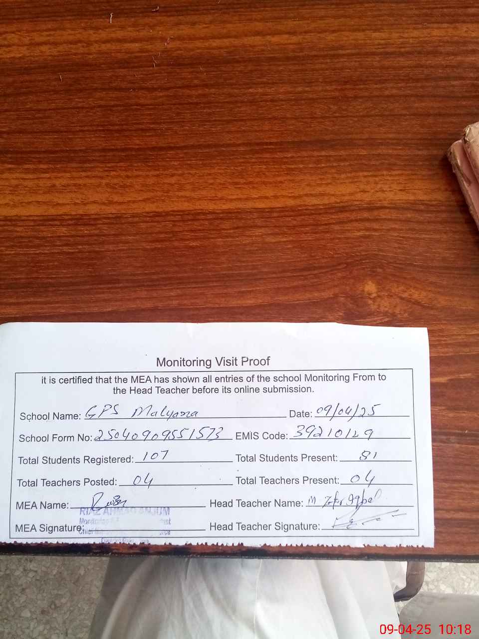 | EMIS Code: 39210129 | Name of School: GPS MALYANA P.O KALYANA | |||
