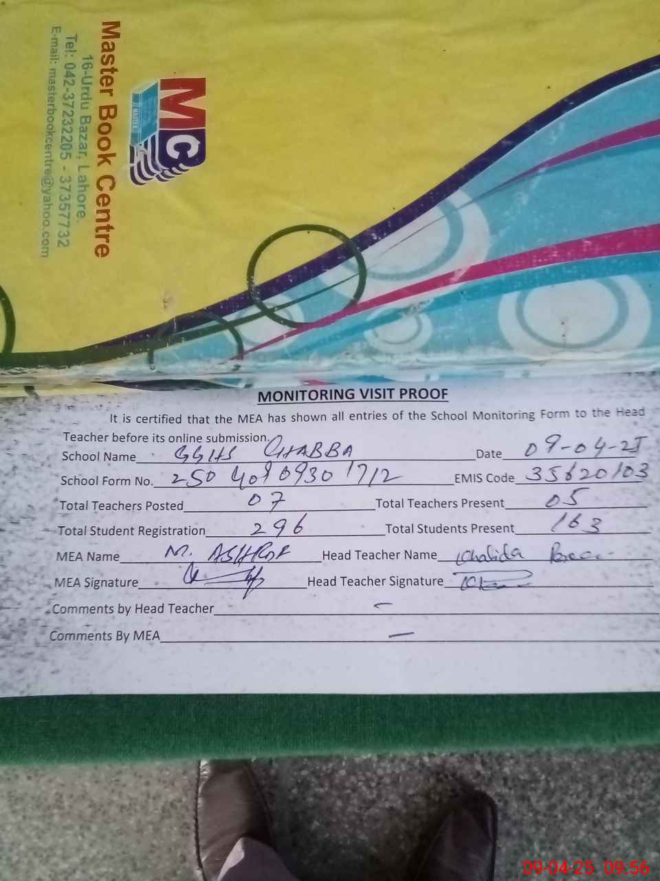 | EMIS Code: 35620103 | Name of School: GGHS CHABA CHAK 169/RB | |||