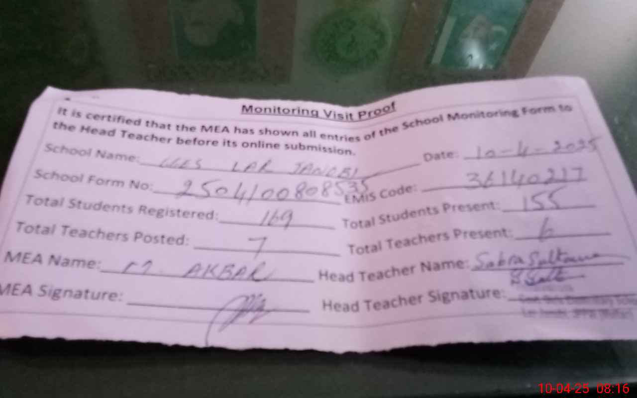 | Certified that this School was Inspected by the Undersigned MEA/DMO Today and the Information Stated Above is as Per Record. | |||||